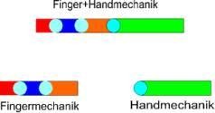Künstlicher "Kleiner Finger" Abmessungen eines kleinen menschlichen Fingers! Gewicht ca. 54 g Die Geschwindigkeit für einen kompletten Bewegungsablauf beträgt nur 1,8 sec ! Zwei magnetische Impulsgeber sind eingebaut. Ein Takt enspricht ca. 0,2mm. Die Kabel sind innen verlegt und dadurch vor äußeren Beschädigungen geschützt. Es können weitere Sensoren installiert werden (Druck,Temperatur). Die Mechanik benötigt keine elektronische Schutzschaltung (2 Sicherheitskupplungen). Es können verschiedene Motor-Getriebe-Kombinationen von unterschiedlichen Hersteller eingebaut werden. Finger- und Handmechanik arbeiten unabhängig voneinander.